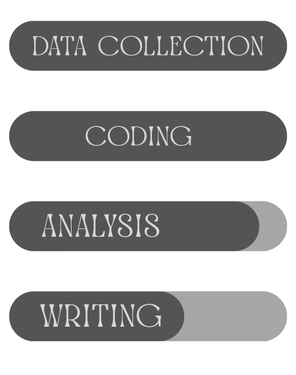 First, I am reviewing the anonymous surveys and interview transcripts through a process called coding. This involves identifying patterns in the data, comparing similarities and differences among responses, and uncovering key themes that emerge across participants’ experiences.